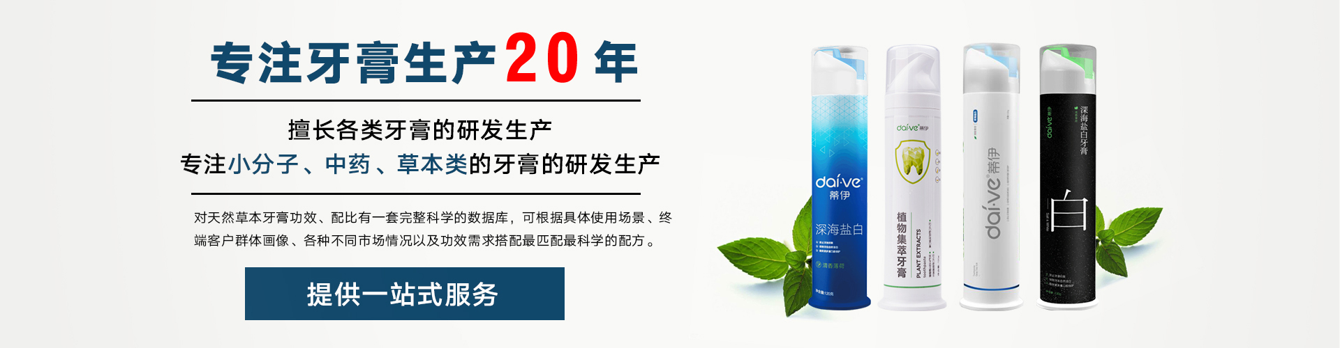 浙江泰康生物科技有限公司地處浙江省歷史名城衢州 是一家集蘆薈種植、產(chǎn)品研發(fā)、農(nóng)產(chǎn)品深加工、銷售為一體的專業(yè)性公司。 專注于日化類產(chǎn)品研發(fā)生產(chǎn)18年的泰康生物,具有豐富的牙膏研發(fā)、生產(chǎn)經(jīng)驗(yàn)。 服務(wù)過上千家企業(yè),擁有超過數(shù)千種配方,擅長(zhǎng)蘆薈、中藥草本類牙膏的研發(fā)生產(chǎn)。 對(duì)于牙膏功效、配比有一套完整、科學(xué)的數(shù)據(jù)庫(kù),可根據(jù)具體使用場(chǎng)景、 終端客戶群體畫像、各種不同市場(chǎng)情況以及功效需求搭配匹配科學(xué)的配方,適用國(guó)內(nèi)外各類市場(chǎng)。 十幾年來,公司銷售業(yè)務(wù)從周邊擴(kuò)散至全國(guó),從國(guó)內(nèi)市場(chǎng)出發(fā)漸漸開始走向國(guó)際市場(chǎng),其